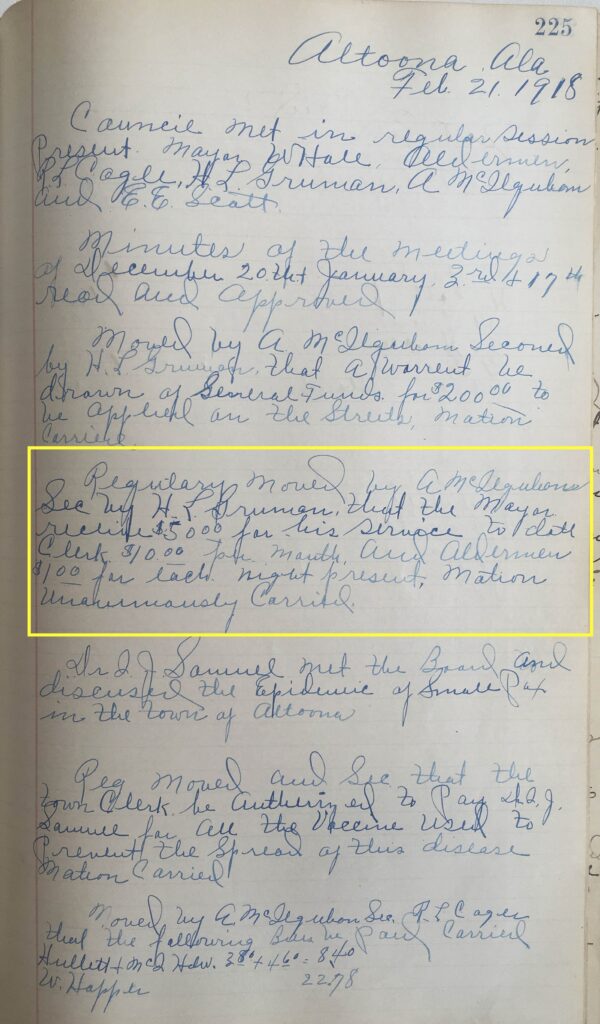 [7] Altoona town Council Minute Book 1910-1924, February 21, 1918, meeting.