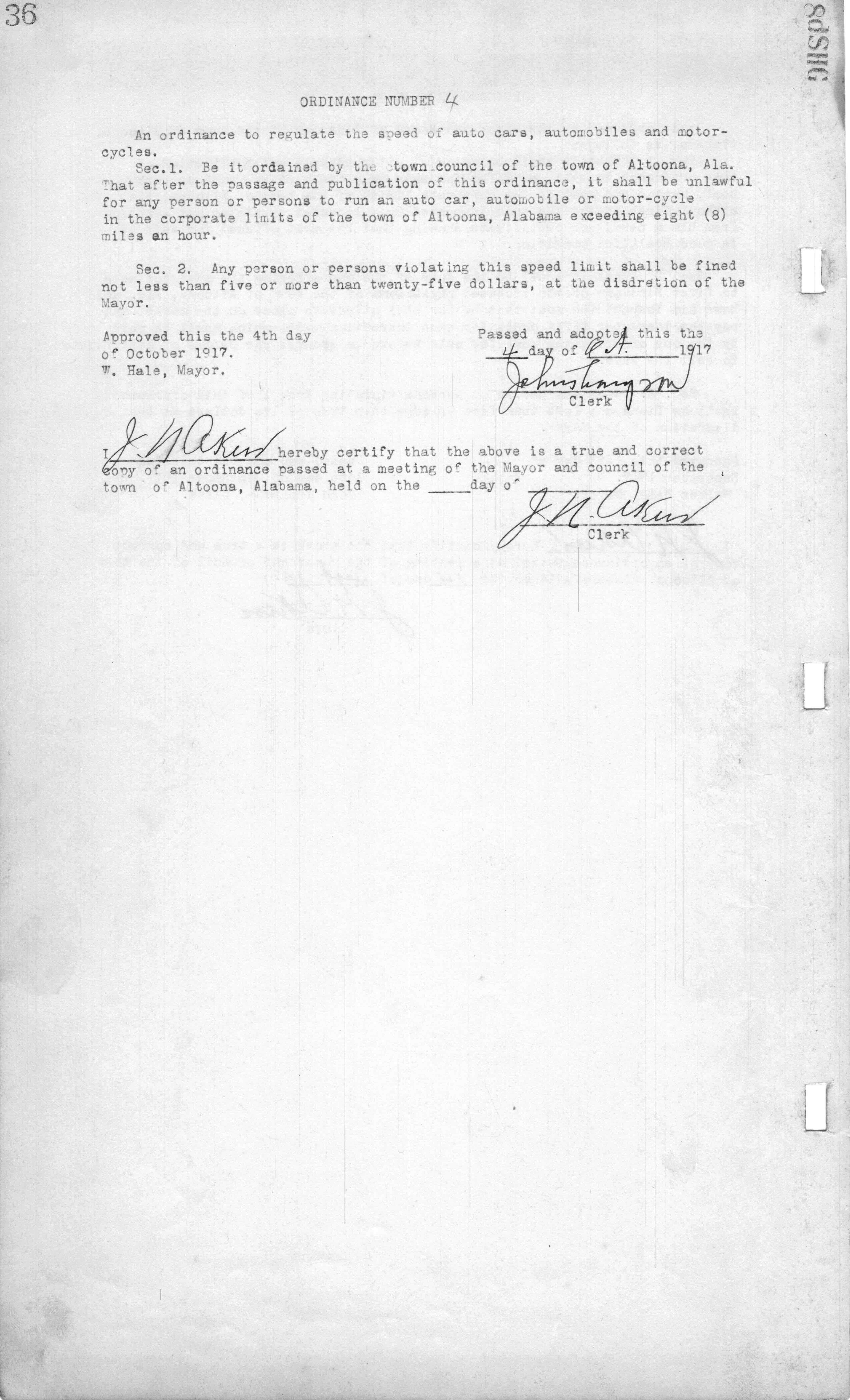 [5] Ordinance #15, Altoona Ordinance Book 1920s-1950s, ordinance passed April 5, 1923.