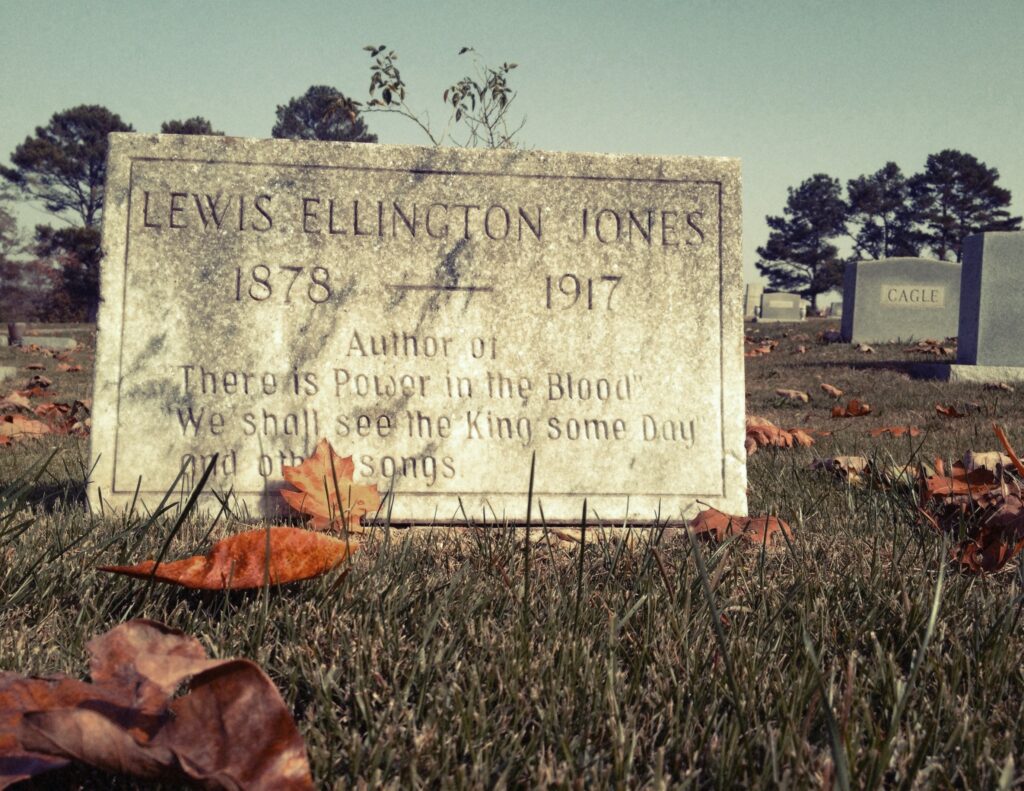 Where did the family legend get its start? Was it with his wife, Mary Jones, or perhaps with Lewis Ellington Jones himself? There is some truth in every legend, and although the song was published in several songbooks by the time of their marriage, it may not have been widely known. Perhaps Lewis, sharing a name with the author, had encountered some of Edgar Jones’s compositions and “composed them to family” in jest. It’s not unthinkable that Lewis Ellington Jones was an organist and may have composed several hymns that remained unpublished, just not the most popular ones attributed to Lewis Edgar Jones. Again, neither Jones’ 1917 memorial article, Mary Scott Jones’s 1957 obituary, or any other news article in between make mention of Lewis Ellington Jones hymn writing or attribute “Power in the Blood,” or “We shall see the king someday” to him.[2] Probably most telling is the fact that the song is titled “Power in the Blood,” while Jones’s headstone and family notes refer to it as “There’s Power in the Blood.”