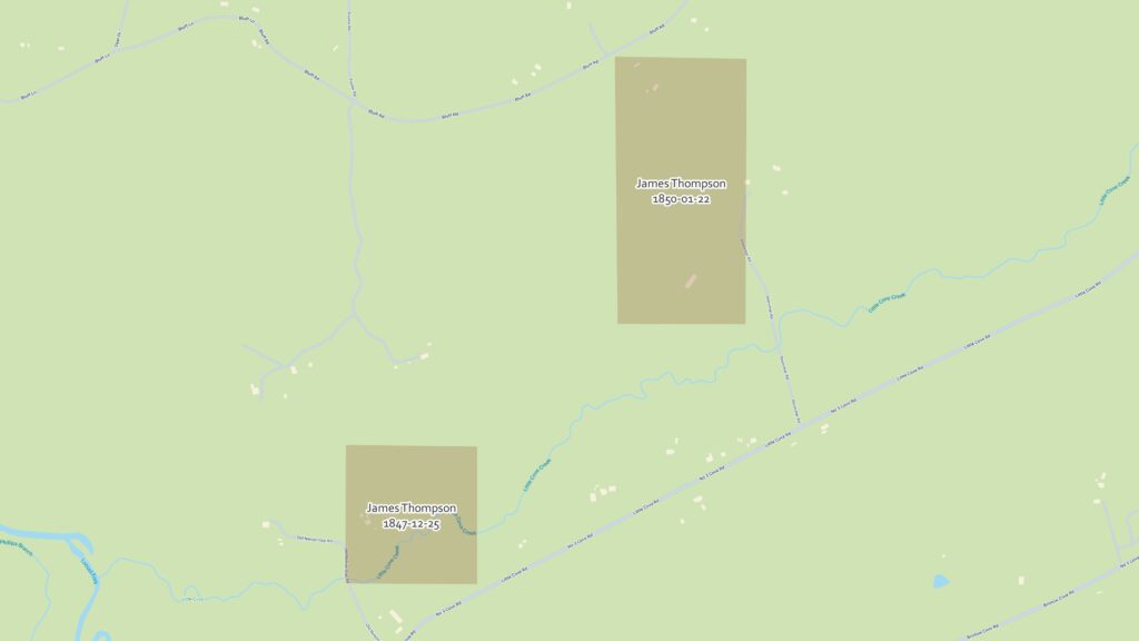 - 1847.12.25 – James Thompson from Deli Gather, Marshall County Deed Book C, Page 396. ↑