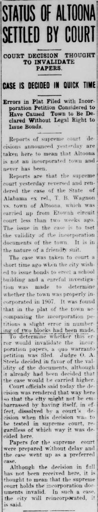 [4] “Status of Altoona settled by court,” 22 June 1917, The Gadsden Evening-Journal, P.1.