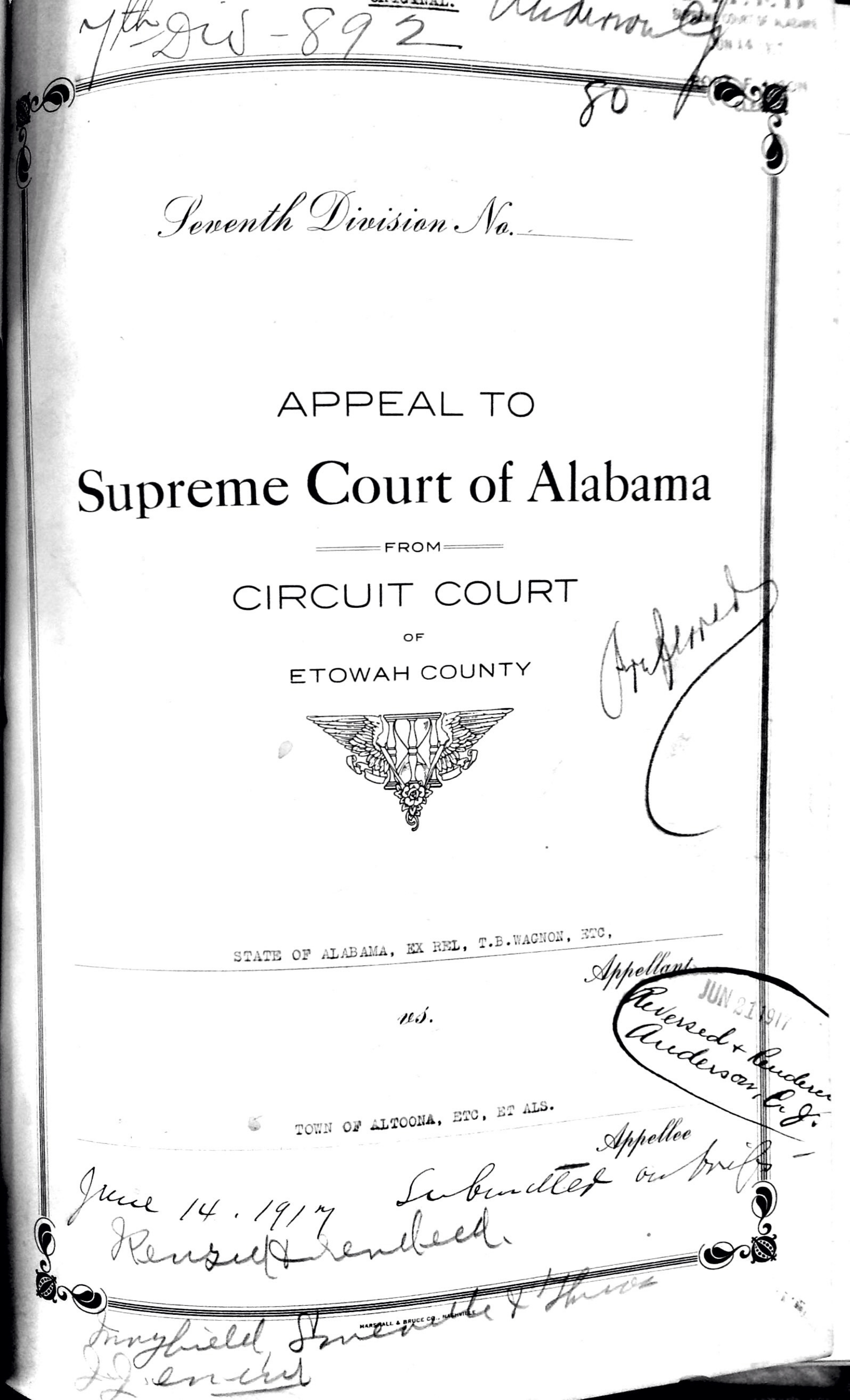 [5] “Appeal to Supreme Court of Alabama,” 7th Div-892, Alabama Department of Archives & History, ADAH-SC2347,