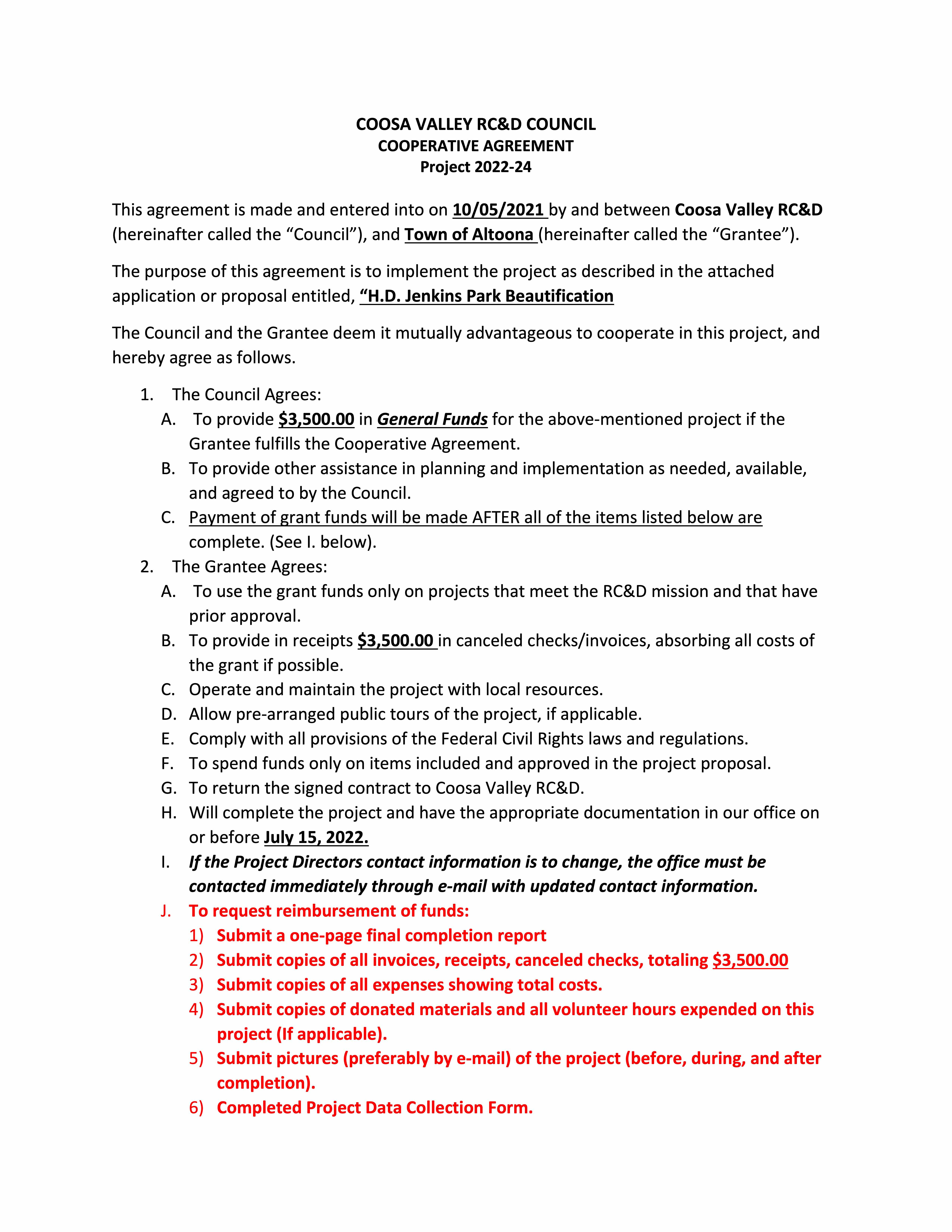 While physical work on the park was halted, the effort to secure funding for the park continued. In 2019 & 2020, the town applied for $7,000 worth of grant funding from Coosa Valley RC&D to upgrade the pavilion and softball field walking lights to LED, refurbish the pavilions with new stain and sealer, replace the vandalized picnic tables, add security cameras to the recreation building and park, and update the park signage. In October of 2021, this grant was finally awarded.