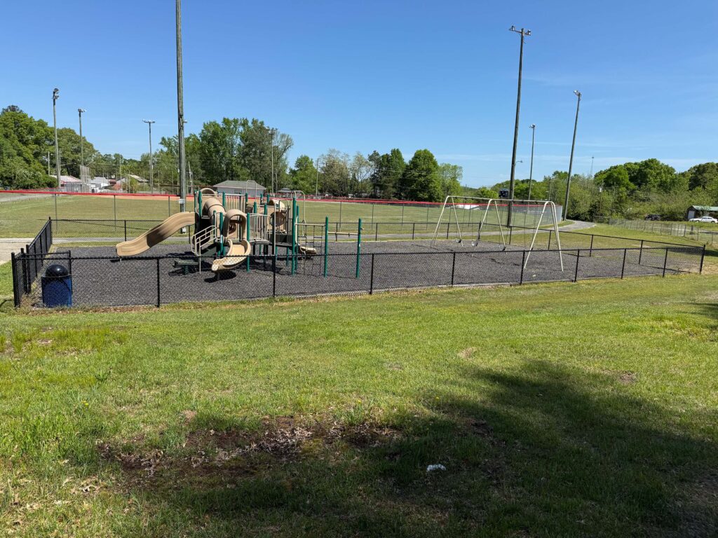 An additional funding source came via ADECA’s Scrap Tire Program. The program, which recycles old tires into rubber mulch, awarded the town $10,000 in the summer of 2021. This program allowed the playground area to have a 100% recycled, long lasting, and safer play base than the wood-chips that were used since its inception.